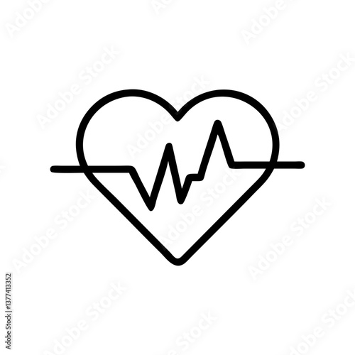 Heartbeat Line Art Icon, Heart Rhythm Symbol, Medical Vector Illustration