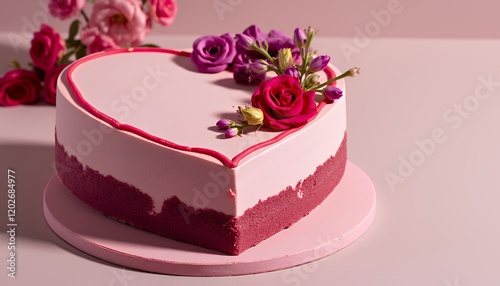 Heart-Shaped Cake Decorated with Pink Roses for Valentine's Day, Romantic Dessert, Sweet Treat, Love and Affection