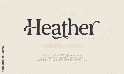 Heather premium luxury elegant alphabet letters and numbers. Vintage wedding typography classic serif font decorative vintage retro. creative vector illustration