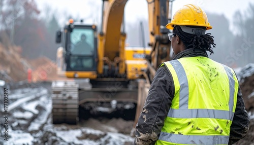 construction site, construction industry, outdoor lighting, heavy machinery, construction worker