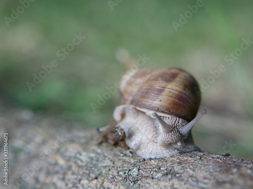 Helix pomatia, common names of the Roman snail, Burgundy snail, edible snail or escargot, is a species of the Helicidae family. Helix pomatia mollusk in nature.