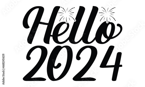 Hello, 2024 -Happy New Year T-shirt Design, Hand drawn calligraphy vector illustration, Illustration for prints on t-shirts and bags, posters