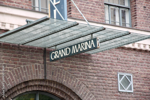 Helsinki, Finland, February 2018 - A sign on a brick building