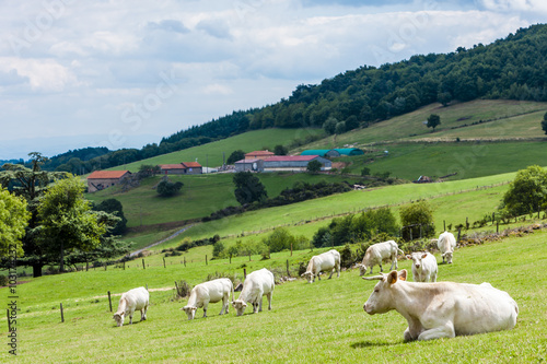 outdoors, outside, exterior, europa, western europe, france, rhone-alpes, loire, nature, zoology, fauna, animal, farm animal, cattle, mammal, cow, herd, country, countryside, rural, agriculture, farming, herbage, meadow