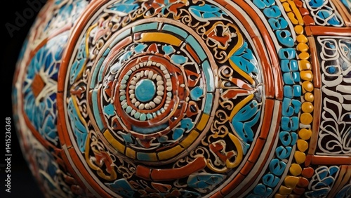 Heritage pottery close up featuring folk art designs and glossy glaze