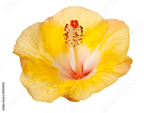 hibiscus, tropical, peach, orange, yellow, flower, isolated, colours, beautiful, beauty, bloom, blossom, botanical, botany, flora, floral, fresh, growth, nature, flower petals, plant, background, closeup, copy space, cut-out, macro, white