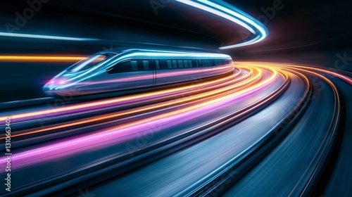 High Speed Train Futuristic Subway Neon Lights Motion Blur Transportation Technology