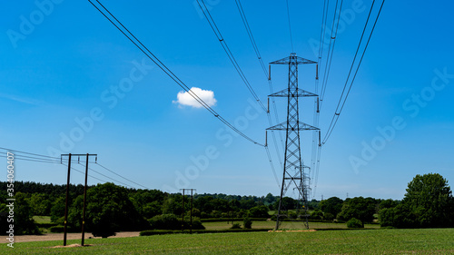 High voltage power lines in the field