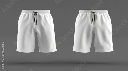 High-Quality White Athletic Shorts Displayed on a Gray Background, Ideal for Sportswear Promotions, Fashion Merchandise, and Fitness Apparel Photography