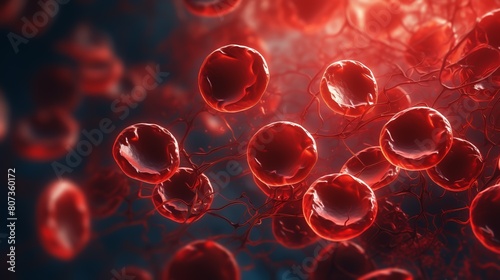 High-resolution image of blood cells in a vein, realistic textures, dynamic flow