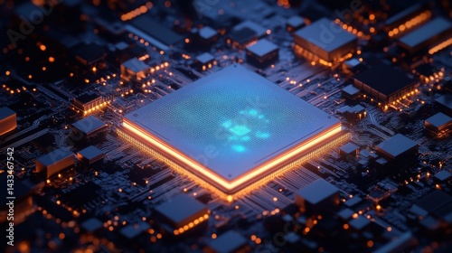 High-tech Circuit Board Glowing with Blue Light Ultimate