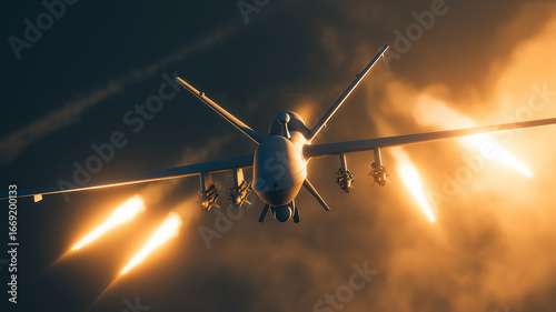 High-Tech Drone in Flight with Missiles Ready for Strategic Precision