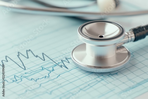 High-Tech Healthcare Insight Digital Stethoscope on ECG Chart - Streamlined Diagnostic Content for Medical Innovation and Efficient Healthcare Tech Solutions