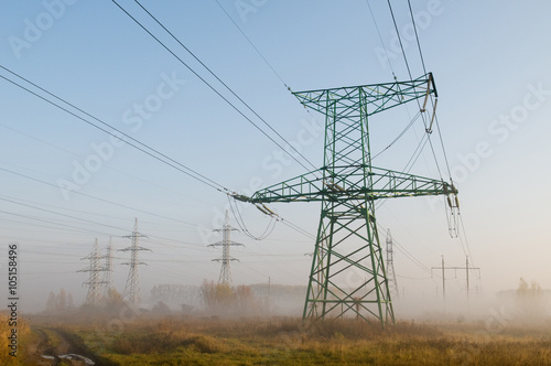 electricity, power, high, voltage, line, transmission, energy, mist, fog, sky, autumn, fall, supply, tower, cable, pylon, electrical, generation, electric, generator, morning, distribution, plant, technology, metal, equipment, industry, structure, steel, industrial, engine, energetic, grid