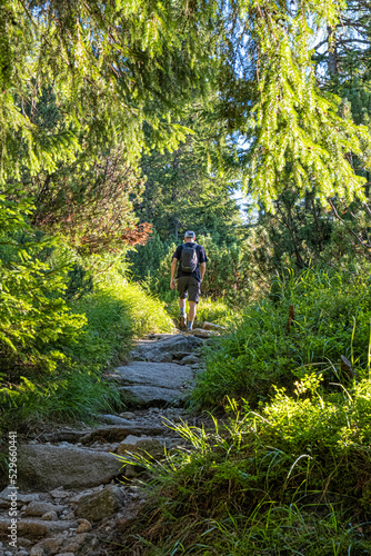 Hiker is walking on the footpath, High Tatras mountains, Slovakia
