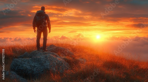 hiker, mountain, sunrise, cloud, peak, watching, sunset, man, travel, adventure, nature, landscape, trekking, hiking, climb, summit, backpack, journey, exploration, view, scenery, freedom, inspiration, achievement, success, lifestyle, active, sport, recreation, wilderness, solitude, peace, calmness, horizon, sky, sun, light, dawn, dusk, orange, red, gold, silhouette, person, standing, rock