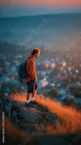 hiker, mountain, summit, rock, nature, landscape, adventure, travel, person, sunrise, exploration, altitude, view, scenic, backpack, height, freedom, calmness, excitement, elevation, terrain, journey, wilderness, life events, atmosphere, light, shadow, beauty, solitary, peaceful, vibrant, grass, sky, colours, hill, photo, isolation, thrill, sunlight, mist, dramatic, scenery, profile, vertical, stillness, motion, companionship