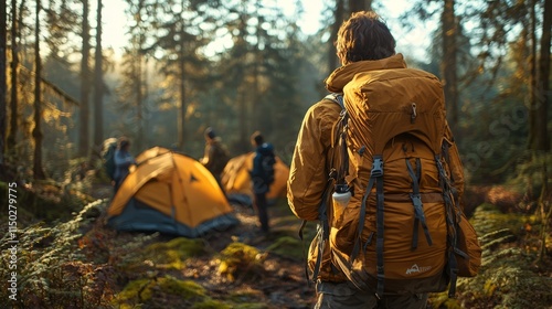 Hiking Adventure in a Serene Forest Camp Setting