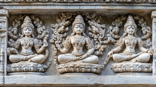 Hindu temple carvings with space for text on a plain background. Ancient art.