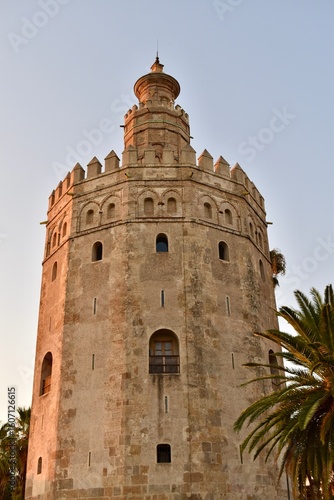 Historic Torre del Oro tower by the Guadalquivir River in Seville, Spain. A must-see tourist landmark in Andalusia.