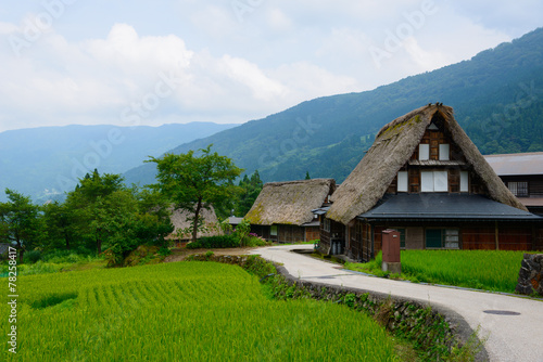 world heritage, landmark, human settlement, village, rural, house, house, rice field, idyl, summer, rice, lovely, four seasons, season, nature, landscape, showplace, japan, asia, tour tourism, travel