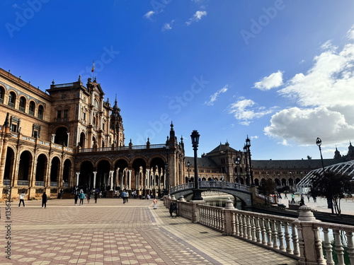 seville, spain, architecture, historical, landmark, travel, tour tourism, city landscape, building, blue skies, cloudy, elegant, european, culture, holiday maker, urban, bridge, square, heritage, ornate, arch, column, famous, historical building, scenic, vacation, exploration, mediterranean, travel destination, daytime, photo, unesco, historic site, artistic