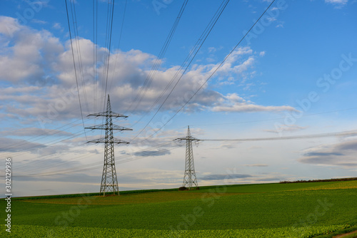 electricity, power supply, cable, pylon, heaven, pylon, field