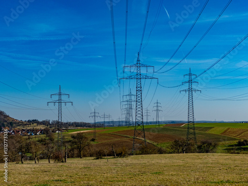 pylon, stream, energy, pylon, electricity, cloudy sky, cloud, tree, countryside, field, infrastructure, duct, high voltage, cable, technology, power plant, power, pole, pipeline