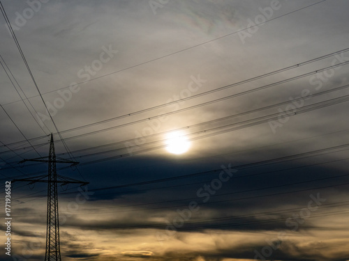 Hochspannungsmasten unter einem bizarren Wolkenhimmel