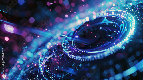 Holographic Tech Rings An abstract background featuring concentric holographic rings with embedded technological elements, futuristic, high-tech appearance.