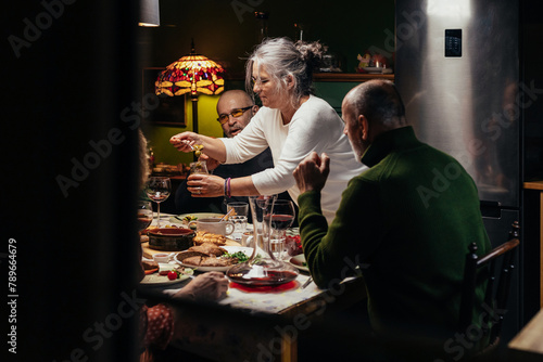 home, brunch, celebration, christmas, conversation, dining, dinner, eat, eating, elderly, family, food, friends, gathering, holiday, meal, new year, new year's eve, senior, smiling, table, talking, togetherness, vegan, vegetarian, wine, christmas