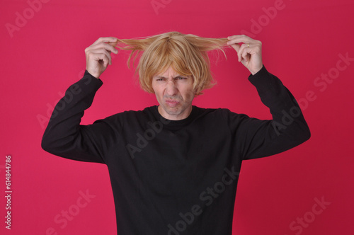 homem aborrecido e triste com a situação de seu cabelo todo arrepiado e sem corte