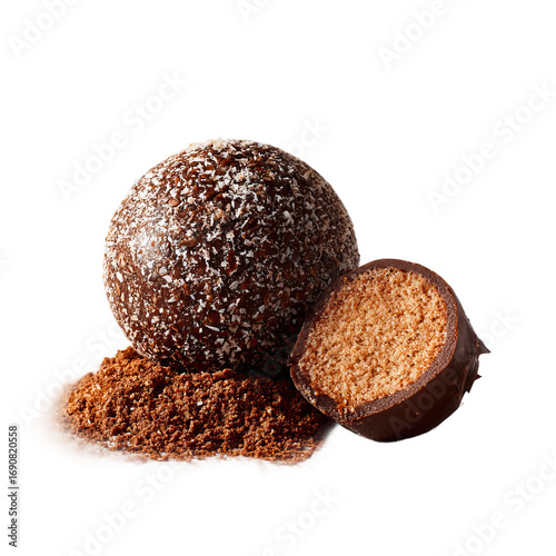 homemade coconut rock ball dessert isolated on white