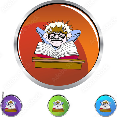 homework, overload, overwhelmed, student, burnout, children, boy, studying, book, vector, metal, frame, round, silver, red, blue, purple, green, icon, set, isolated, white, buttons, web, symbol, shape, illustration, graphic, clip, art, design, element, shiny