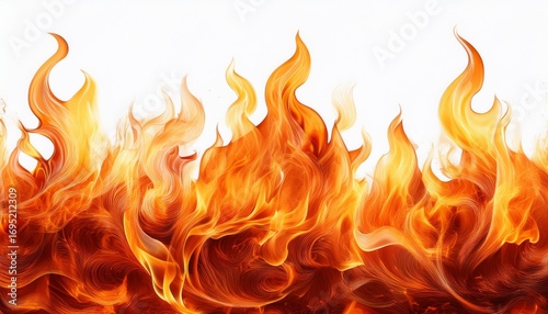 horizontal flame border with intense fire and vivid orange hues isolate on white background cutout