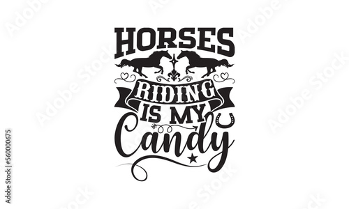 Horses Riding Is My Candy - Horse SVG T-shirt Design, Hand drawn vintage illustration with lettering and decoration, Isolated on white background, for prints on bags and poster.