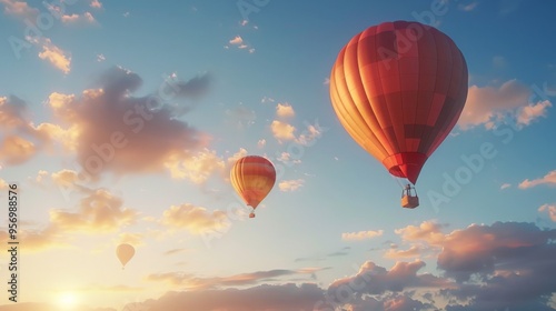 Hot air balloons floating peacefully against a morning sky