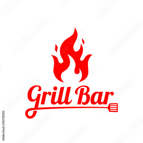 Hot grill bar logo concept inspiration with fire and spatula element, perfect for perfect for food, barbecue, bbq and restaurant logo design