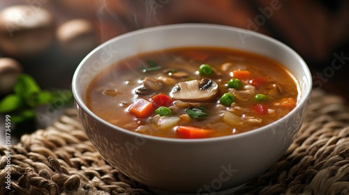 Hot mushroom soup on a white bowl
