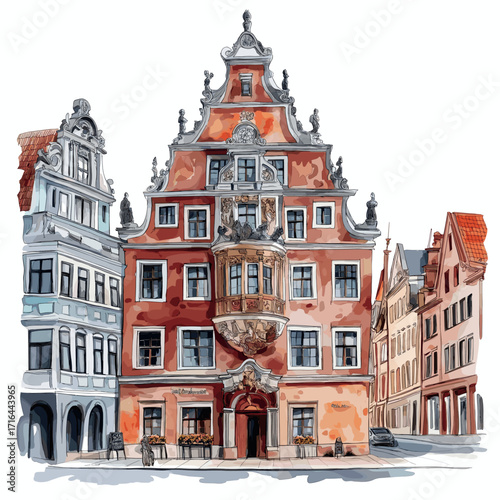 House of the Blackheads. House of the Blackheads watercolor vector illustration