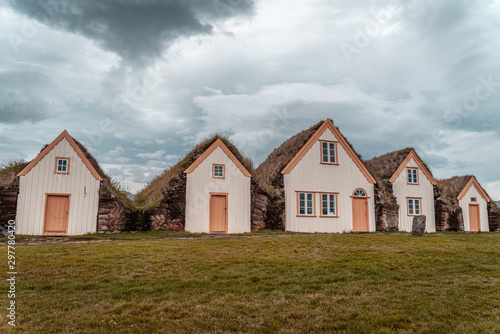 house, home, building, grass, sky, architecture, green, bungalow, country, landscape, blue, farm, roof, new, rural, countryside, summer, construction, nature, wooden, red, village, old, garden, structure