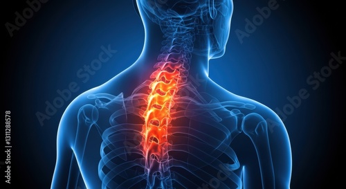 Human Anatomy Cervical Spine Pain 3D Medical Illustration Back View Red Highlight