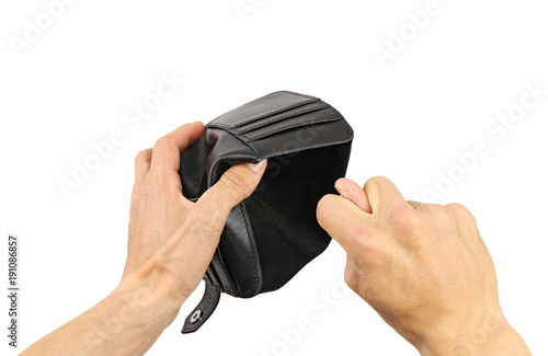 isolated, billfold, hand, background, concept, empty, hold, open, business, financial, fig, show, credit, crisis, poor, poverty, nothing, discover, check, verify, inspect, arm, finance, purse, bankrupt, person, closeup, man, male, human, leather, economic, pocket, black, problem, payment, search