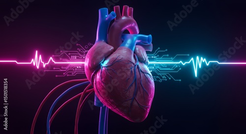 nubes, pulse, anatomy, technology, medicals, health care, science, digital, cardiovascular, neon, blue, pink, purple, circuit, electronic, waveform, cardiogram, cardiogram, biology, human, body, organ, health, medicine, vital, signs, monitor, system, datum, network, innovation, future, progress, artificial, intelligence, realistic, rendering, three-dimensional, model, graphic, design