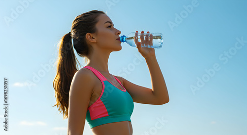 water, woman, athlete, drinking, physical exercise, fitness, summer, health, wellness, refreshment, hydratation, sport, active, lifestyle, healthy, exercise, training, girl, bottle, plastic, clear, blue, sky, sun, energy, vitality, beautiful, young, model, sporty, fit, strong, happy, smiling, positive, healthy lifestyle, well-being, body, shape, performance, active life, mind, soul