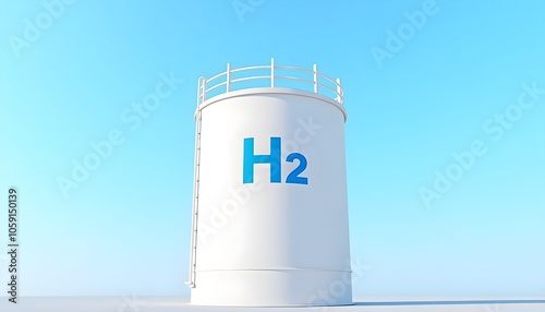 Hydrogen storage tank under clear sky, symbolizing clean energy and sustainability.