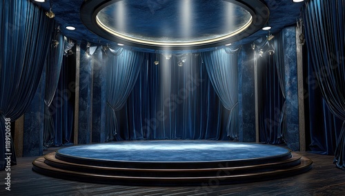 blue, stage, curtain, spotlight, center, empty, blank, design, display, space, business, modern, three-dimensional, clean, showcase, presentation, minimal, copy space, advertisement, creative, billboard, elegant, minimalist, perspective, realistic, trendy, light, night, carousel, interior, light, fun, architecture, fair, ceiling, hall, theatre, round, glasses, spinning