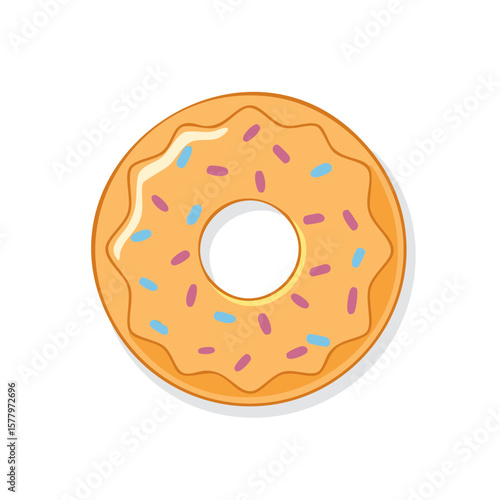 Iced Doughnut with Sprinkles Sweet Treat Pastry Confection Food Vector Illustration
