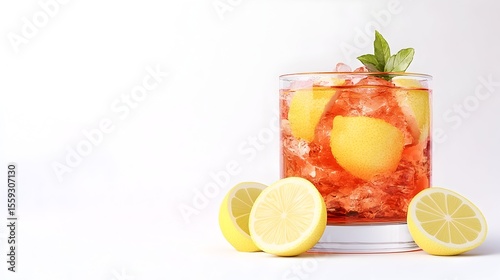 Iced tea lemon drink studio shot white background