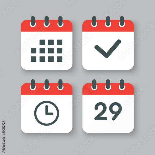 Icons calendar number 29, agenda app, timer, done
